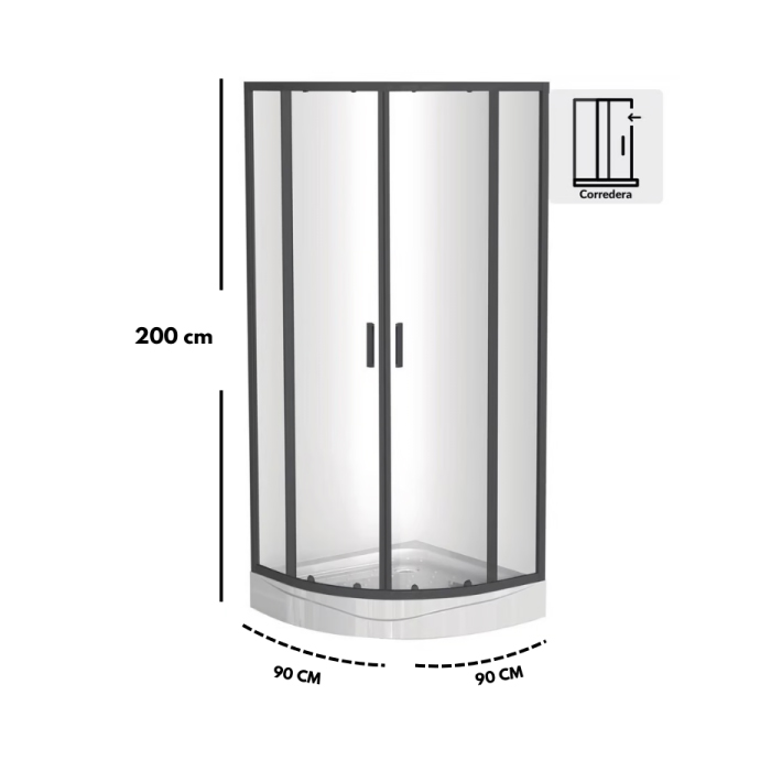 Cabina de Ducha SHOWER CURVO 90X90X200 MARCO NEGRO