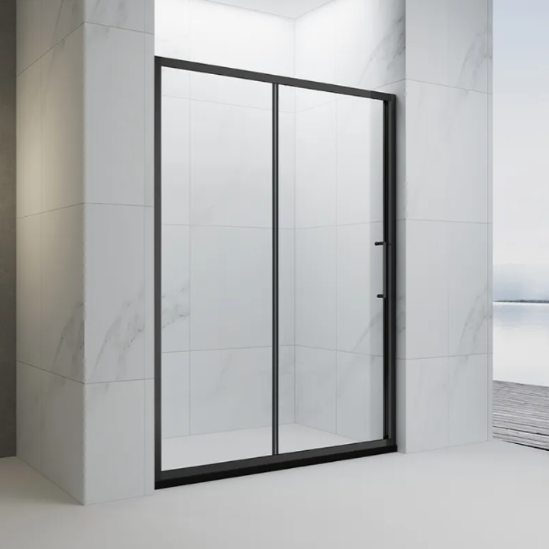 Mampara de ducha deslizante con marco negro, diseñada para adaptarse a un ancho ajustable de 120 cm a 130 cm, ofreciendo versatilidad y un ajuste preciso para diferentes espacios de baño. Su estructura robusta y elegante aporta un estilo moderno y minimalista.